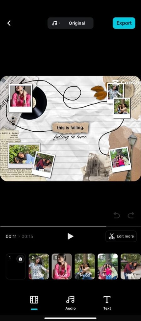 To edit using the The Falling Love CapCut Template, first open sushilprotips.com/. Click on the The Falling Love CapCut Template link, and it will automatically open in the CapCut app. Tap on “Use Template,” add your photos or short video clips, preview the video, and export it in 9:16 format for Instagram Reels.